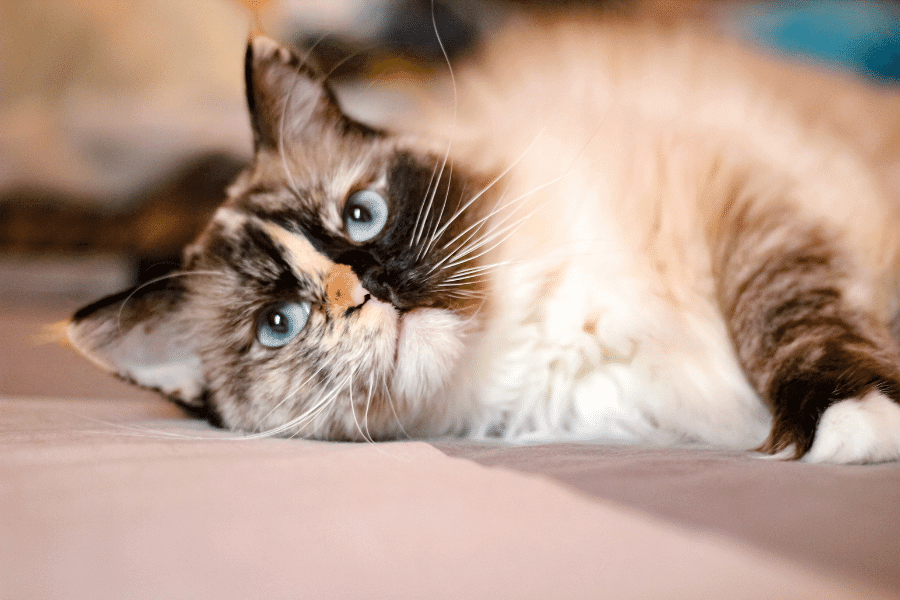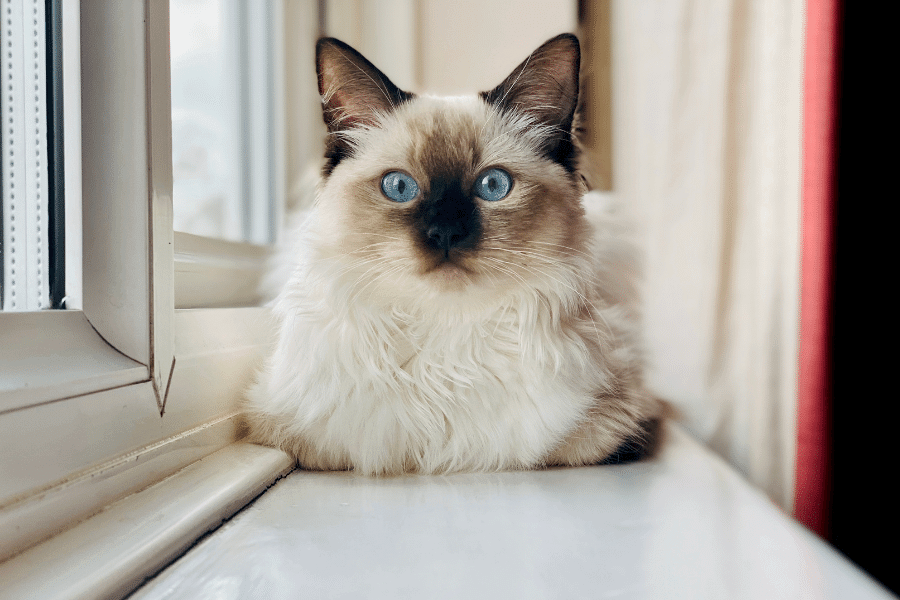 The Ragdoll Cat is known for its relaxed, friendly temperament, large size, non-mating coat, and striking appearance.